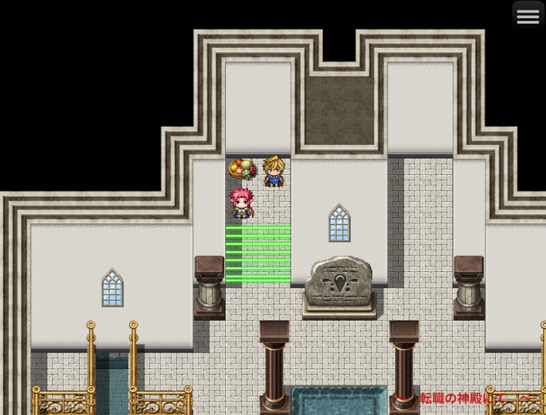 - 転職の神殿に入るとイベント発生。立ち去らないで魔法の牢屋に投獄される。